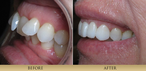 Through artistry and laboratory technique, we achieve outstanding and beautiful results restoring teeth with all- Porcelain Veneers and Porcelain Crowns. The cutting edge technology of adhesive bonding dentistry makes these restorations second to none. Many of the before and after cases you see here utilize this type of restoration-note their lifelike vitality. By removing unhealthy or cracked tooth structure and replacing it with natural looking porcelain, which fits the tooth like a thimble or jacket, we protect the remaining tooth structure and achieve a beautiful result.